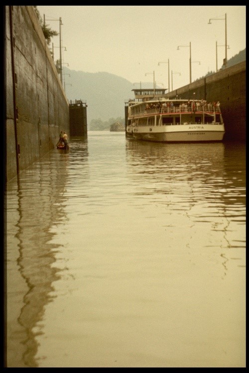 In Engelhardtszell, dort ist die Schifffahrtsbehörde und das Deutsch- Österreichische Zollamt, wurden wir kontrolliert.