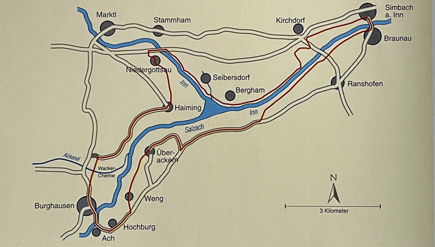Tittmoning--Laufen: Strecke 48 km.